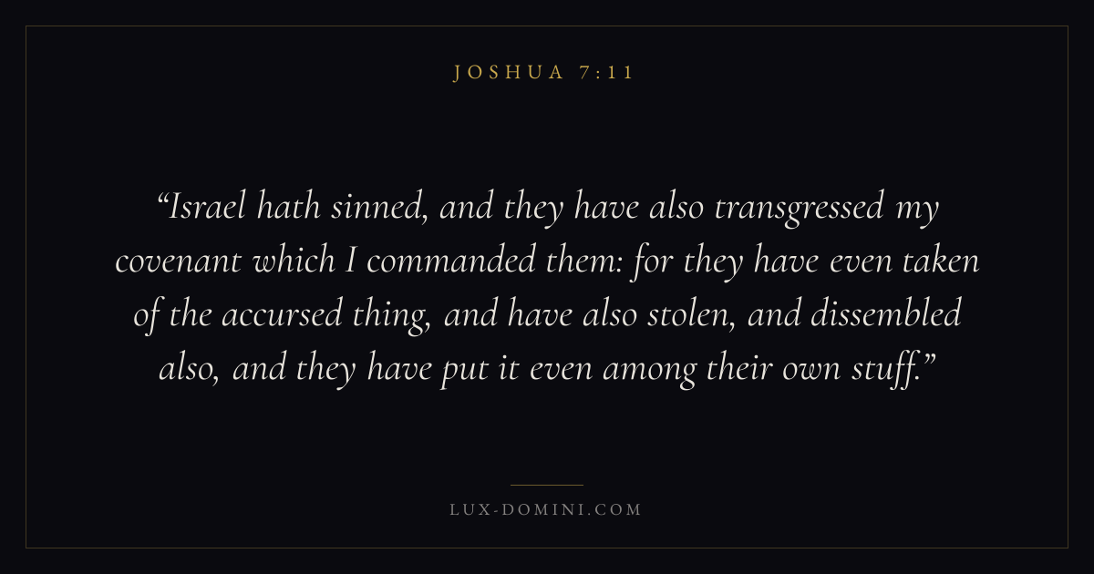 Israel hath sinned, and they have also transgressed my covenant which I commanded them: for they have even taken of the accursed thing, and have also stolen, and dissembled also, and they have put it even among their own stuff.