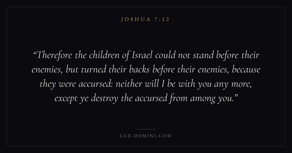 Therefore the children of Israel could not stand before their enemies, but turned their backs before their enemies, because they were accursed: neither will I be with you any more, except ye destroy the accursed from among you.