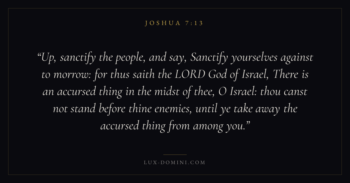 Up, sanctify the people, and say, Sanctify yourselves against to morrow: for thus saith the LORD God of Israel, There is an accursed thing in the midst of thee, O Israel: thou canst not stand before thine enemies, until ye take away the accursed thing from among you.