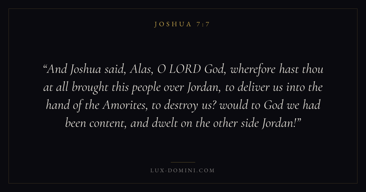 And Joshua said, Alas, O LORD God, wherefore hast thou at all brought this people over Jordan, to deliver us into the hand of the Amorites, to destroy us? would to God we had been content, and dwelt on the other side Jordan!
