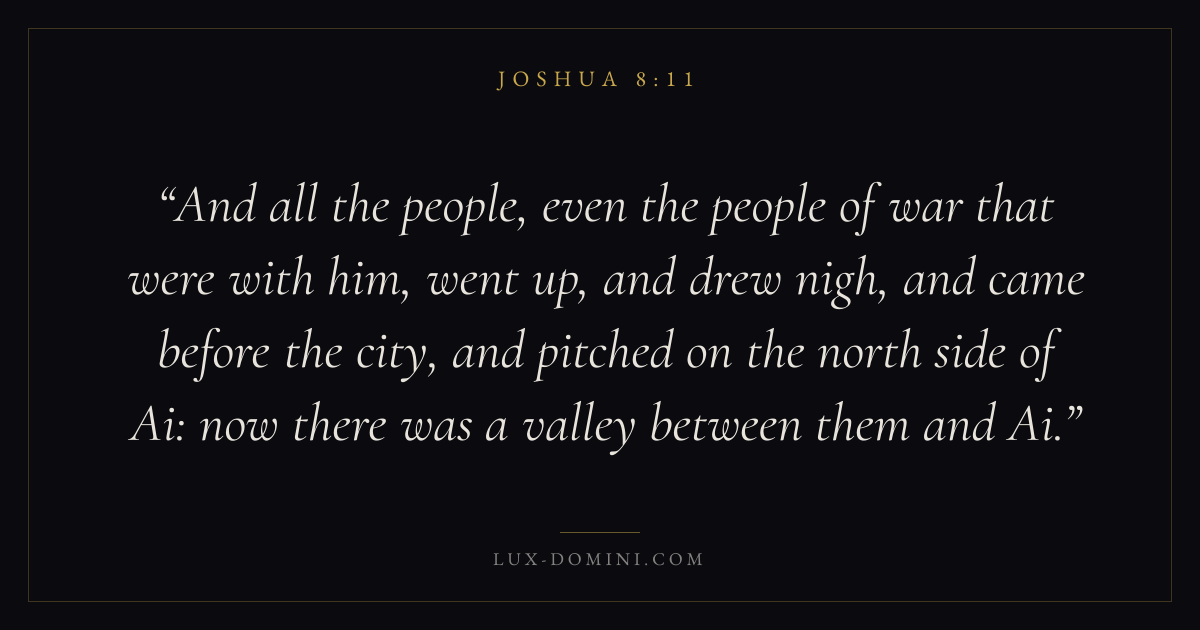 And all the people, even the people of war that were with him, went up, and drew nigh, and came before the city, and pitched on the north side of Ai: now there was a valley between them and Ai.