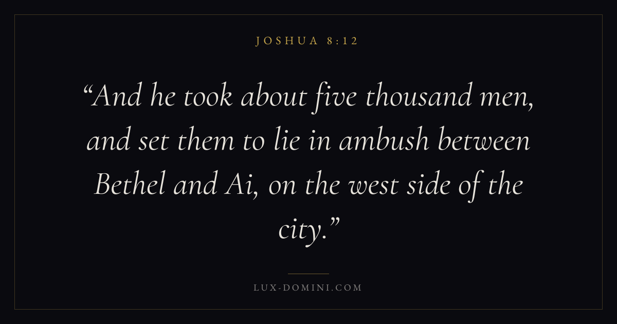And he took about five thousand men, and set them to lie in ambush between Bethel and Ai, on the west side of the city.