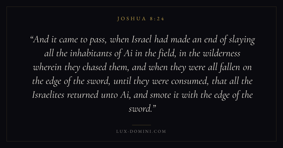 And it came to pass, when Israel had made an end of slaying all the inhabitants of Ai in the field, in the wilderness wherein they chased them, and when they were all fallen on the edge of the sword, until they were consumed, that all the Israelites returned unto Ai, and smote it with the edge of the sword.