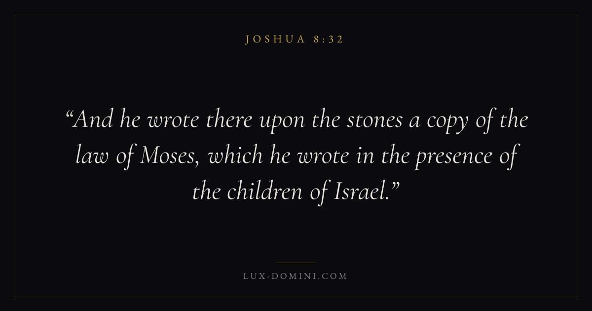 And he wrote there upon the stones a copy of the law of Moses, which he wrote in the presence of the children of Israel.