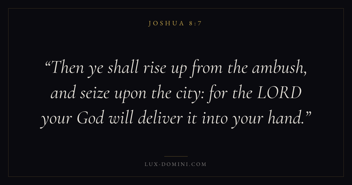 Then ye shall rise up from the ambush, and seize upon the city: for the LORD your God will deliver it into your hand.