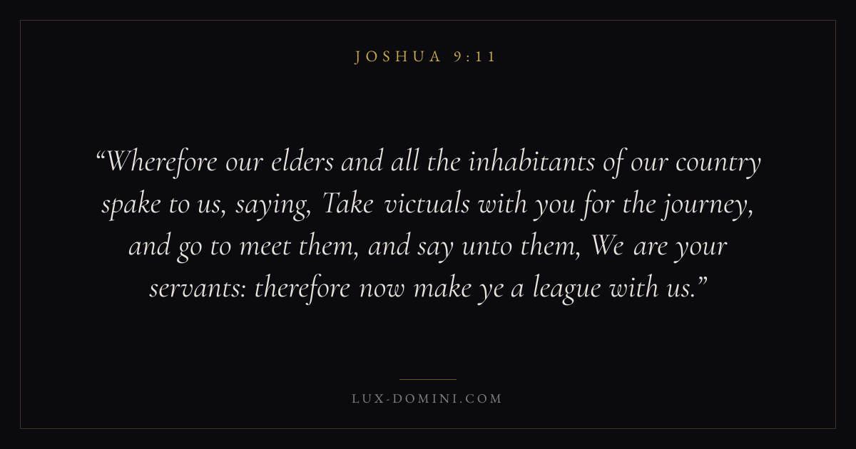 Wherefore our elders and all the inhabitants of our country spake to us, saying, Take victuals with you for the journey, and go to meet them, and say unto them, We are your servants: therefore now make ye a league with us.