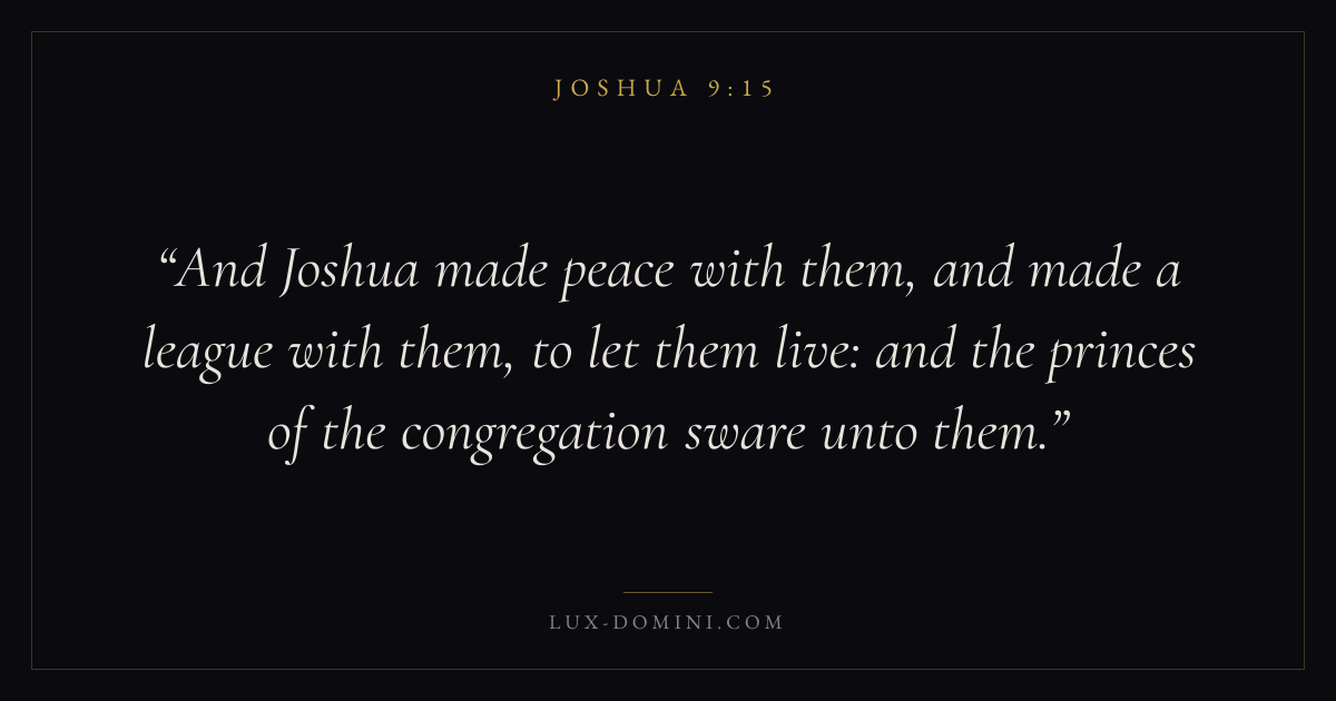And Joshua made peace with them, and made a league with them, to let them live: and the princes of the congregation sware unto them.