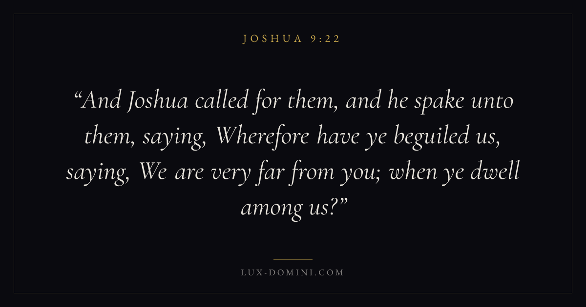 And Joshua called for them, and he spake unto them, saying, Wherefore have ye beguiled us, saying, We are very far from you; when ye dwell among us?