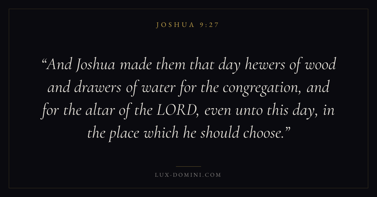 And Joshua made them that day hewers of wood and drawers of water for the congregation, and for the altar of the LORD, even unto this day, in the place which he should choose.