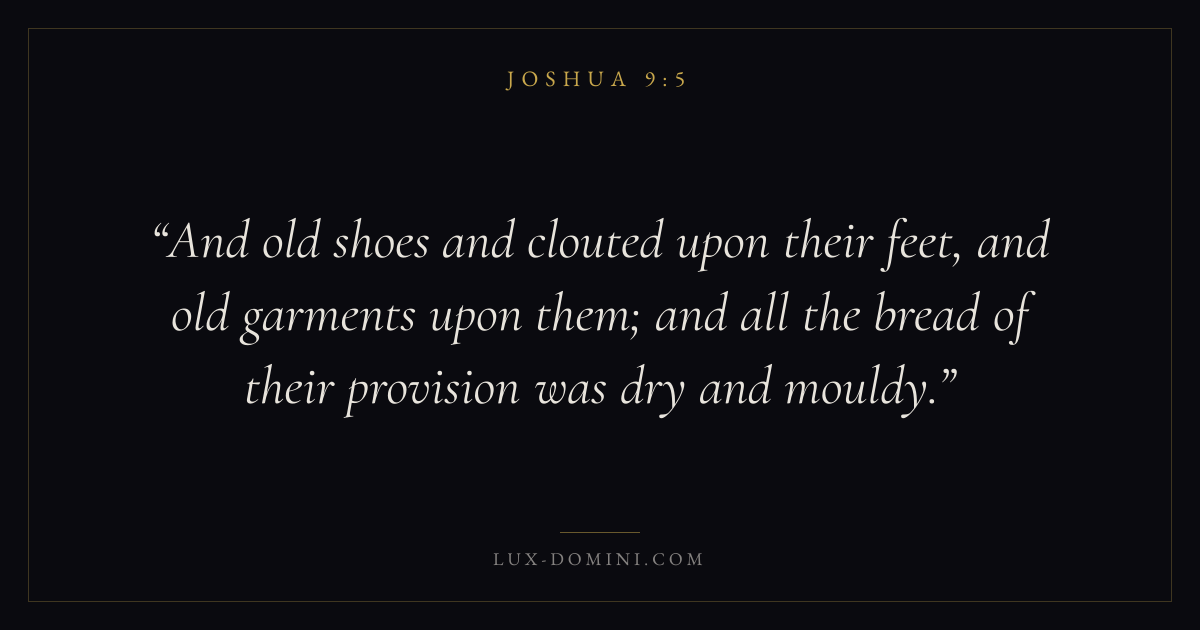 And old shoes and clouted upon their feet, and old garments upon them; and all the bread of their provision was dry and mouldy.