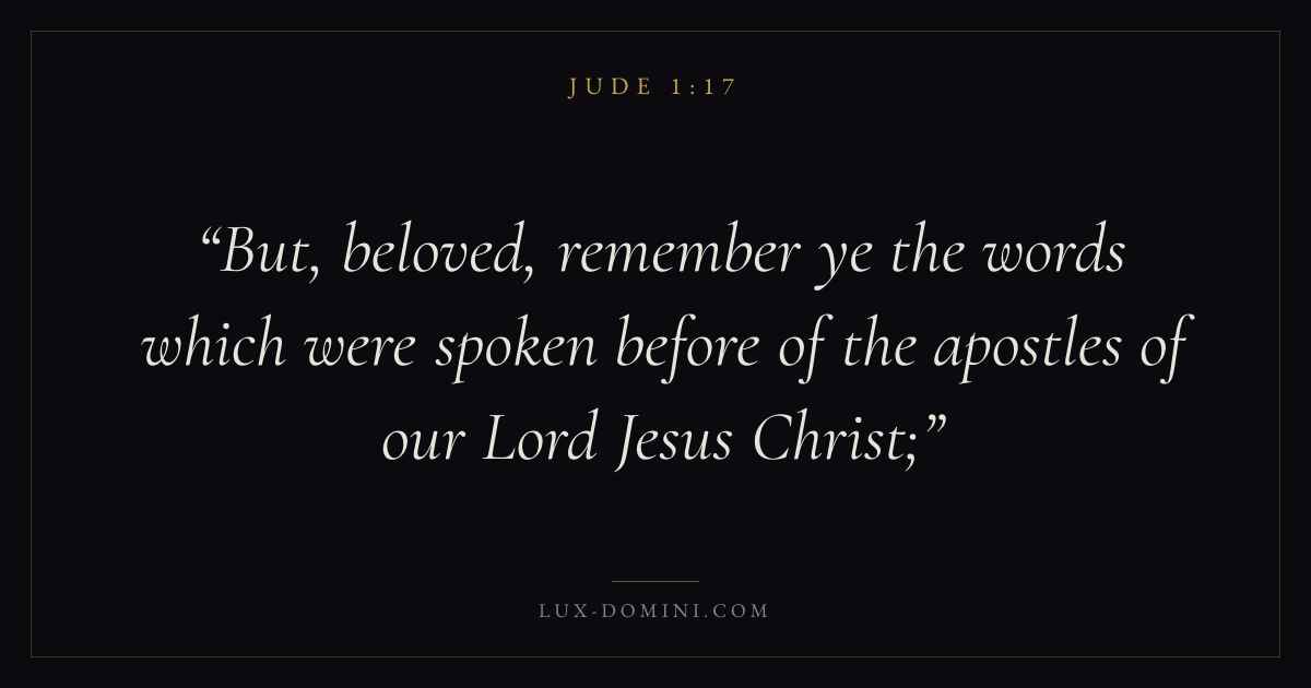 But, beloved, remember ye the words which were spoken before of the apostles of our Lord Jesus Christ;