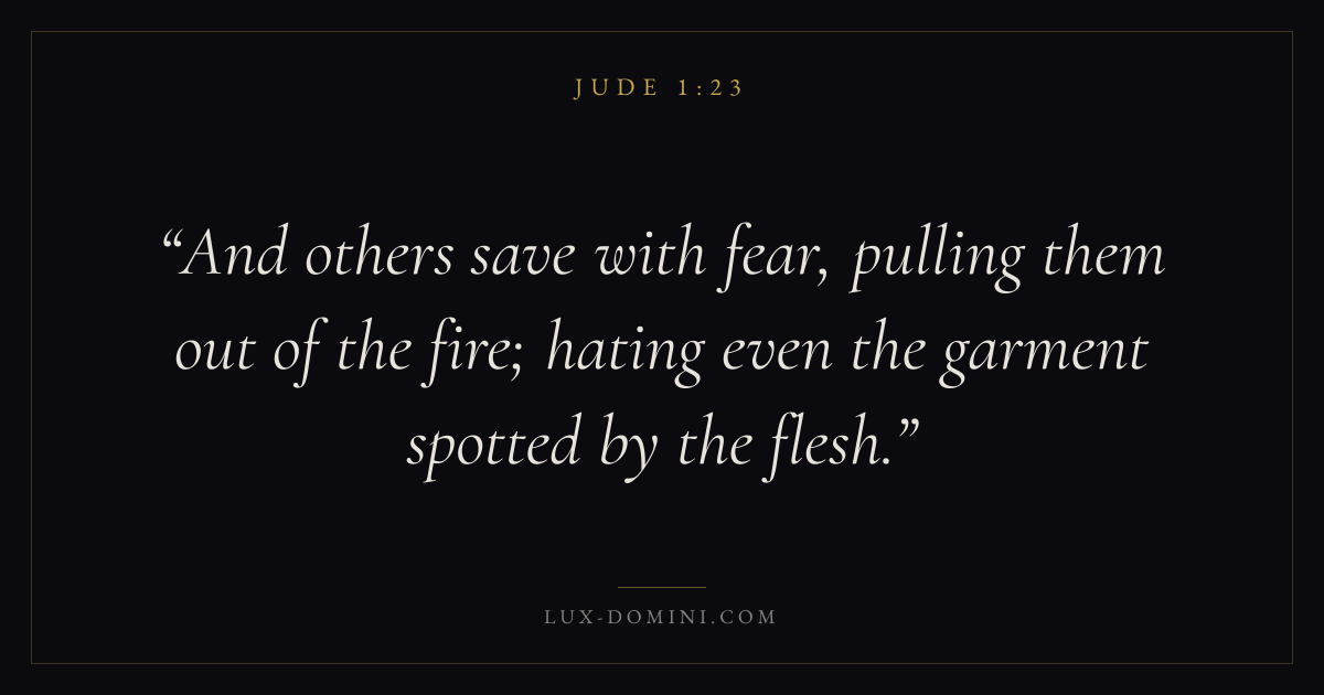 And others save with fear, pulling them out of the fire; hating even the garment spotted by the flesh.