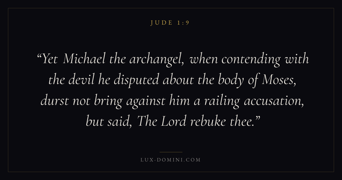 Yet Michael the archangel, when contending with the devil he disputed about the body of Moses, durst not bring against him a railing accusation, but said, The Lord rebuke thee.