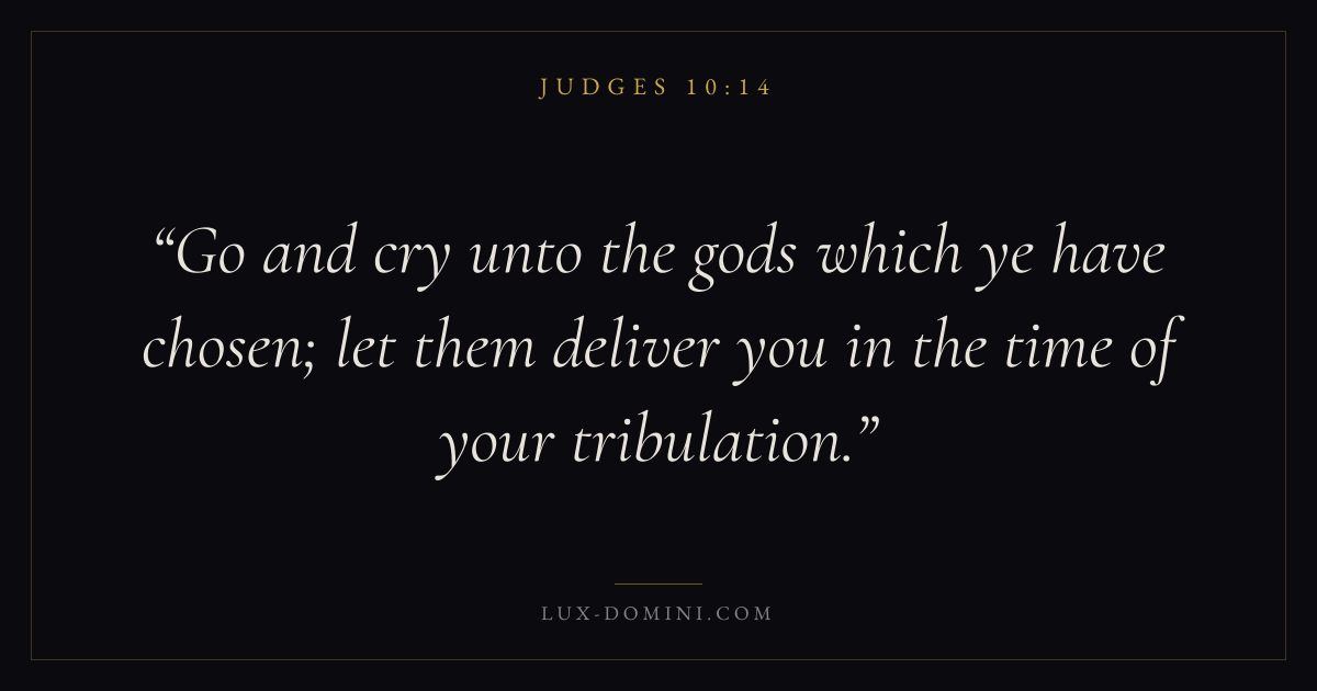 Go and cry unto the gods which ye have chosen; let them deliver you in the time of your tribulation.