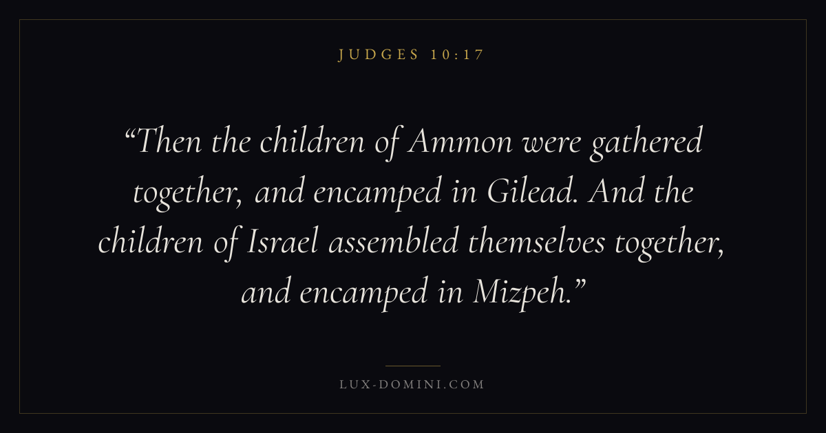 Then the children of Ammon were gathered together, and encamped in Gilead. And the children of Israel assembled themselves together, and encamped in Mizpeh.