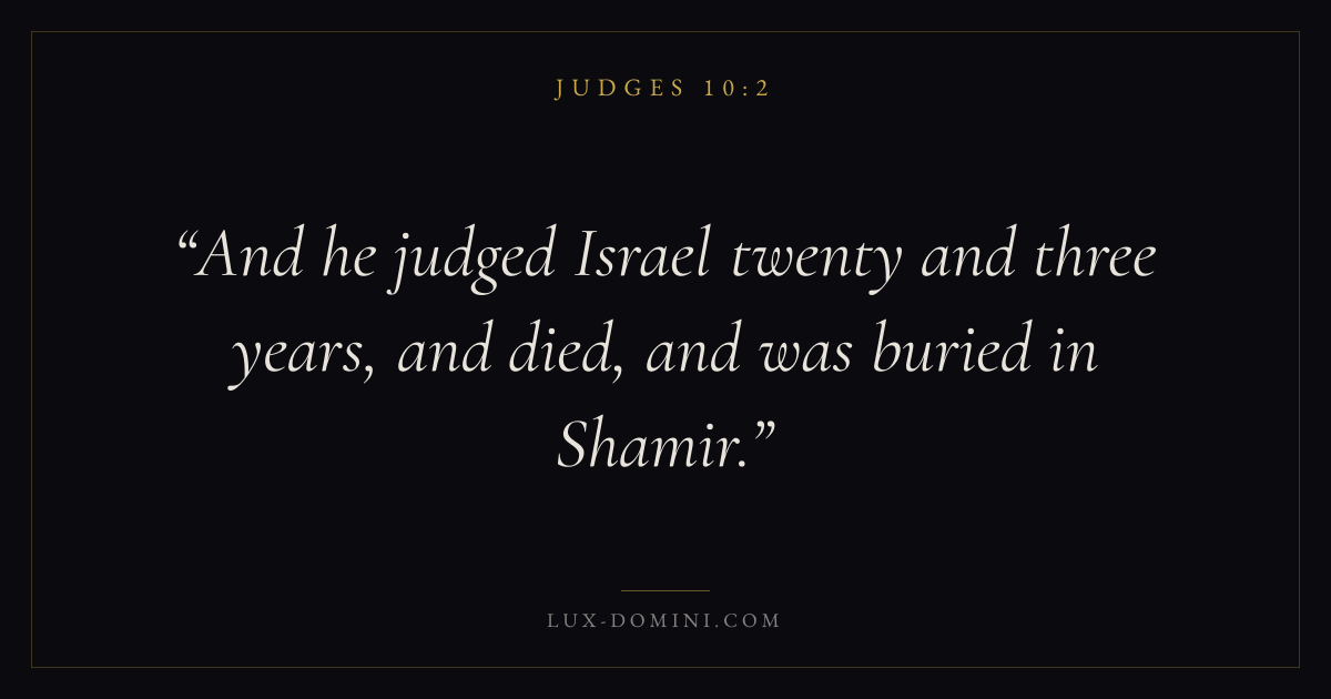 And he judged Israel twenty and three years, and died, and was buried in Shamir.