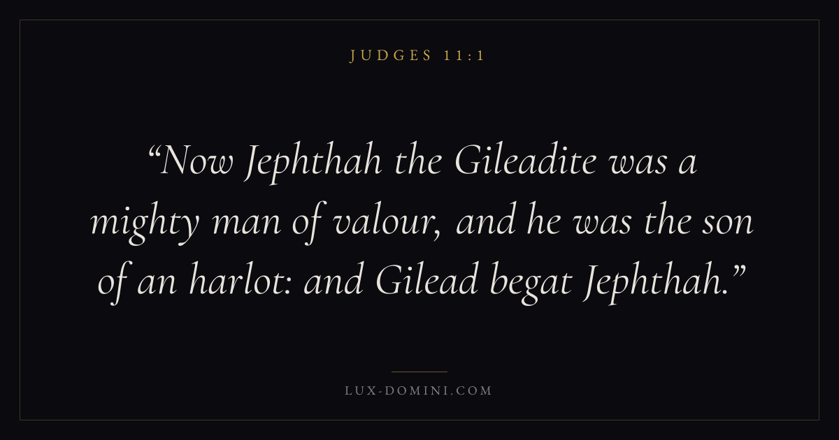 Now Jephthah the Gileadite was a mighty man of valour, and he was the son of an harlot: and Gilead begat Jephthah.