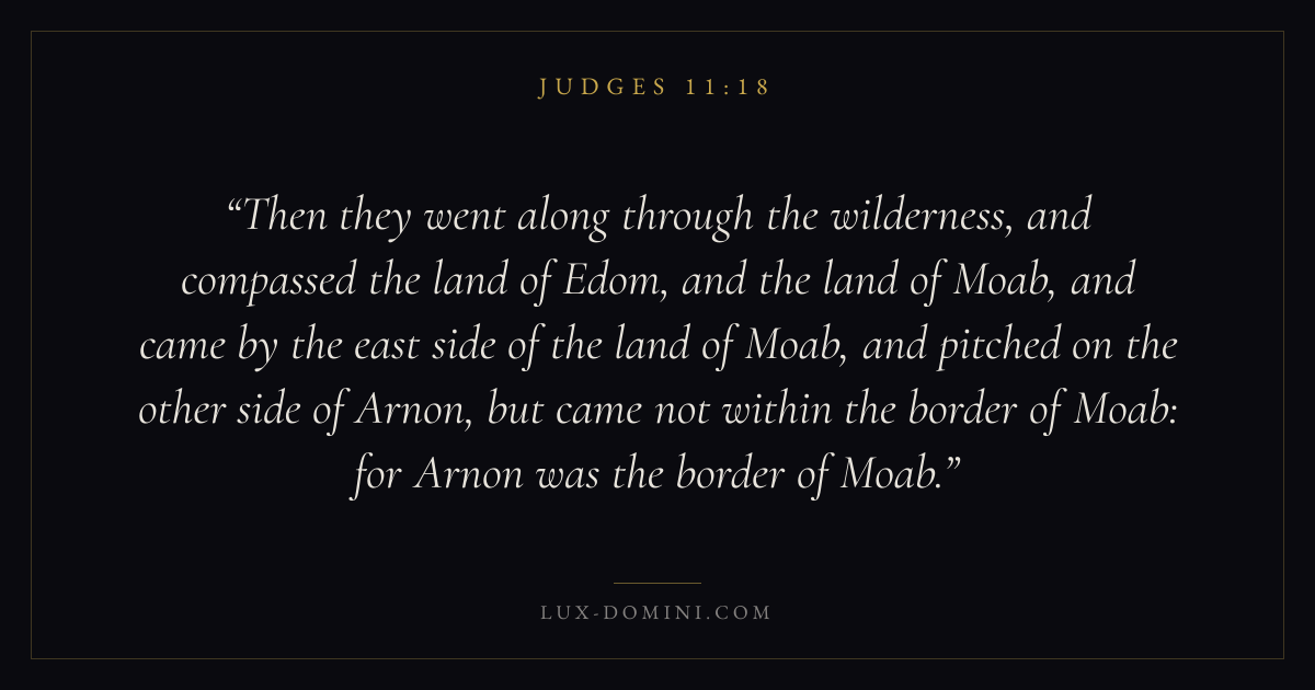 Then they went along through the wilderness, and compassed the land of Edom, and the land of Moab, and came by the east side of the land of Moab, and pitched on the other side of Arnon, but came not within the border of Moab: for Arnon was the border of Moab.