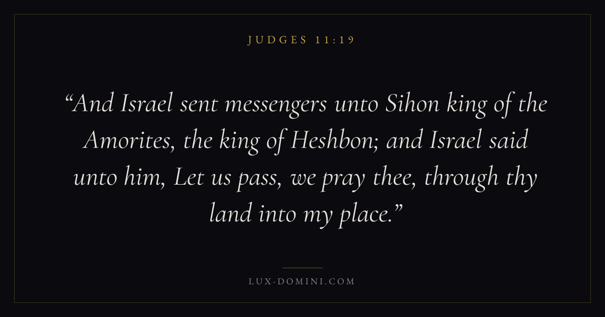 And Israel sent messengers unto Sihon king of the Amorites, the king of Heshbon; and Israel said unto him, Let us pass, we pray thee, through thy land into my place.