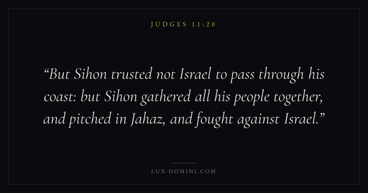 But Sihon trusted not Israel to pass through his coast: but Sihon gathered all his people together, and pitched in Jahaz, and fought against Israel.