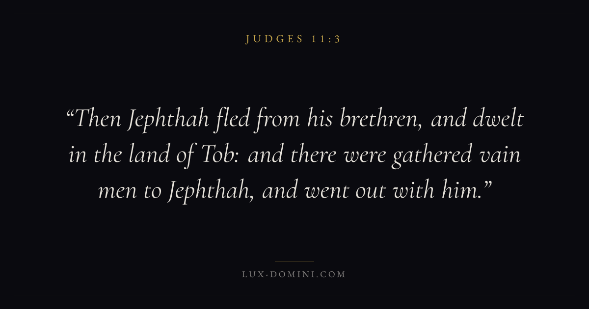 Then Jephthah fled from his brethren, and dwelt in the land of Tob: and there were gathered vain men to Jephthah, and went out with him.