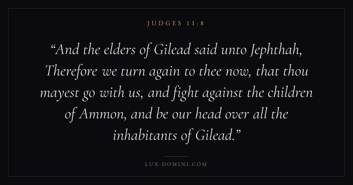 And the elders of Gilead said unto Jephthah, Therefore we turn again to thee now, that thou mayest go with us, and fight against the children of Ammon, and be our head over all the inhabitants of Gilead.