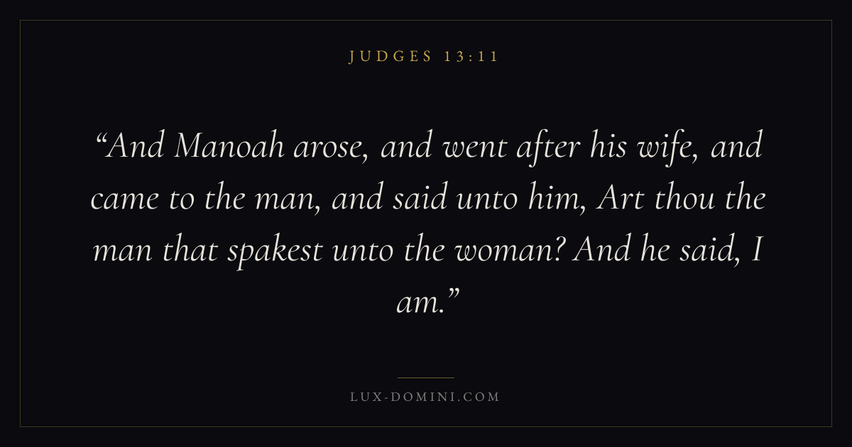 And Manoah arose, and went after his wife, and came to the man, and said unto him, Art thou the man that spakest unto the woman? And he said, I am.