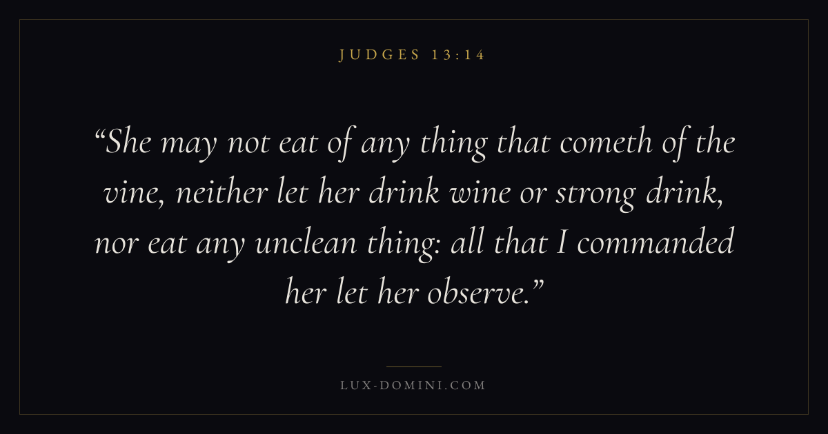 She may not eat of any thing that cometh of the vine, neither let her drink wine or strong drink, nor eat any unclean thing: all that I commanded her let her observe.
