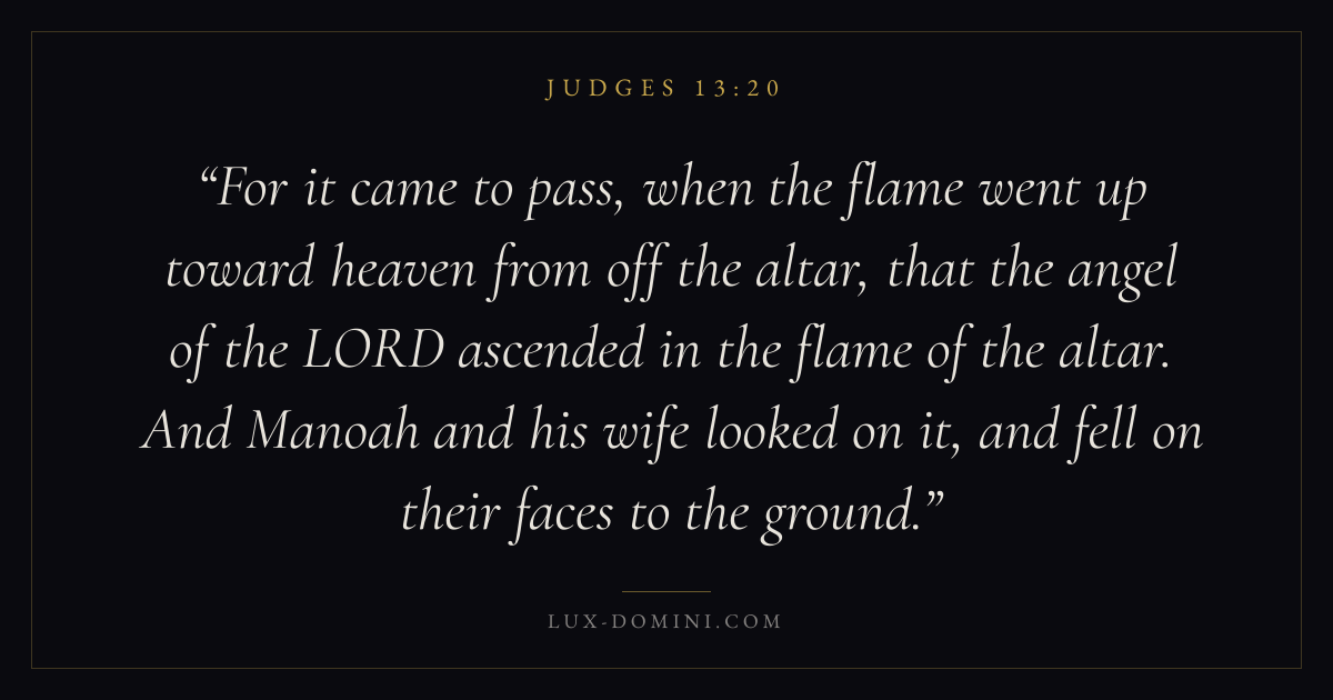 For it came to pass, when the flame went up toward heaven from off the altar, that the angel of the LORD ascended in the flame of the altar. And Manoah and his wife looked on it, and fell on their faces to the ground.