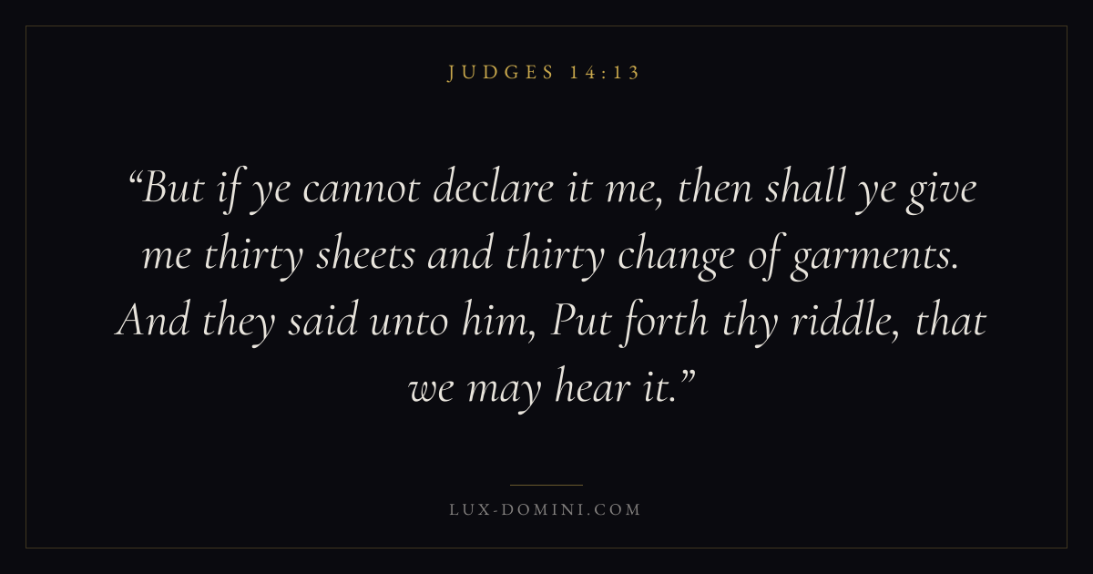 But if ye cannot declare it me, then shall ye give me thirty sheets and thirty change of garments. And they said unto him, Put forth thy riddle, that we may hear it.