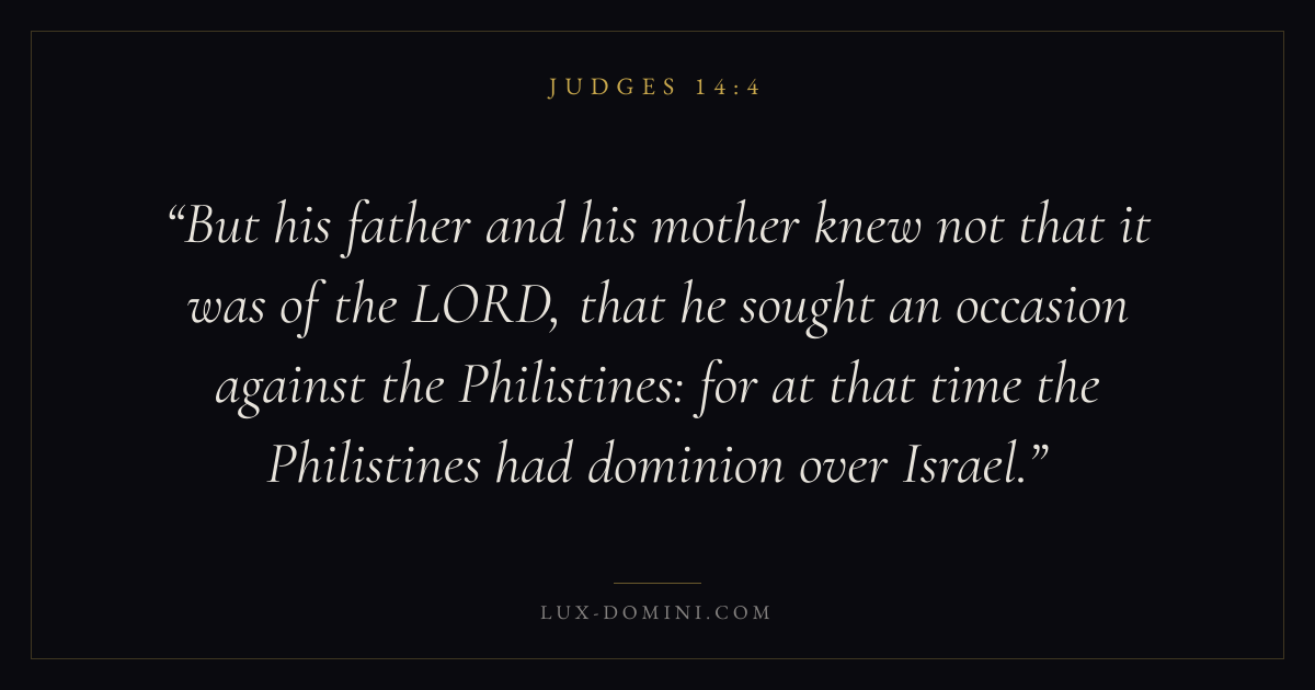 But his father and his mother knew not that it was of the LORD, that he sought an occasion against the Philistines: for at that time the Philistines had dominion over Israel.