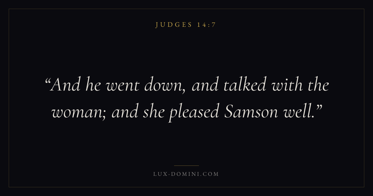 And he went down, and talked with the woman; and she pleased Samson well.