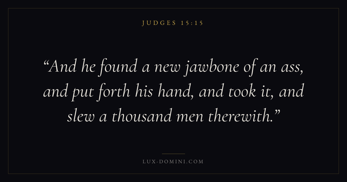 And he found a new jawbone of an ass, and put forth his hand, and took it, and slew a thousand men therewith.