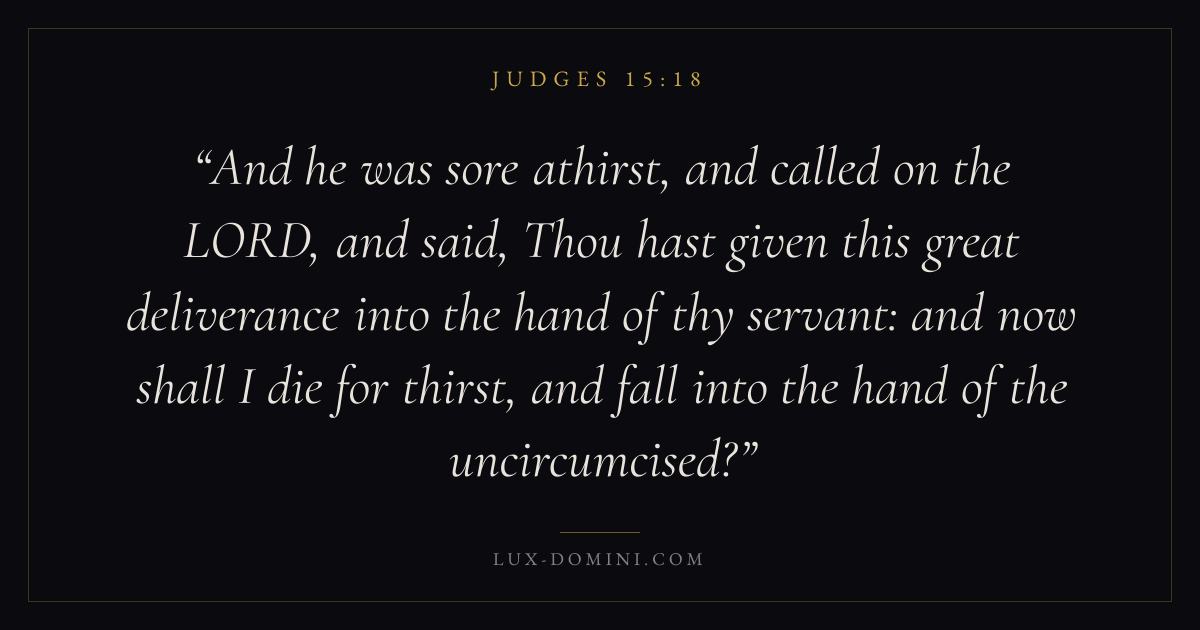 And he was sore athirst, and called on the LORD, and said, Thou hast given this great deliverance into the hand of thy servant: and now shall I die for thirst, and fall into the hand of the uncircumcised?