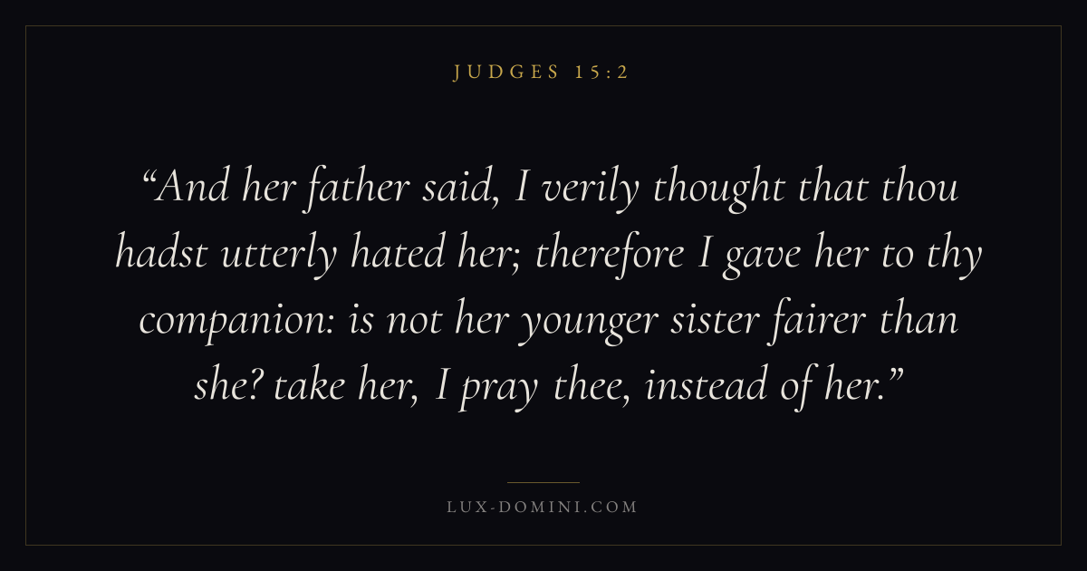 And her father said, I verily thought that thou hadst utterly hated her; therefore I gave her to thy companion: is not her younger sister fairer than she? take her, I pray thee, instead of her.