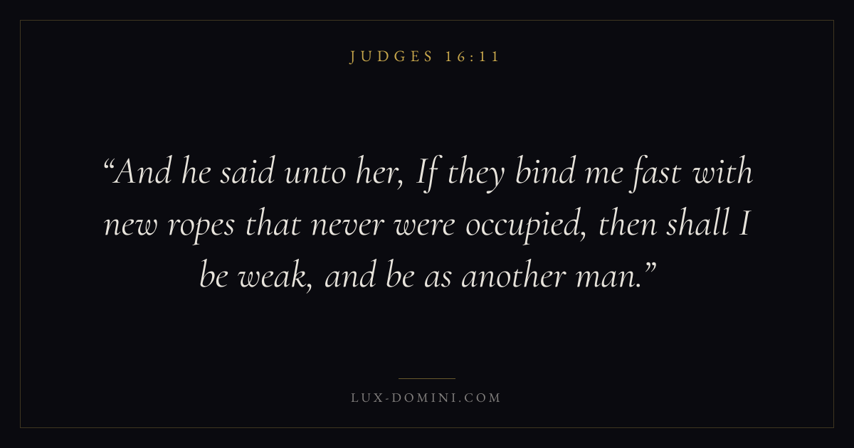 And he said unto her, If they bind me fast with new ropes that never were occupied, then shall I be weak, and be as another man.