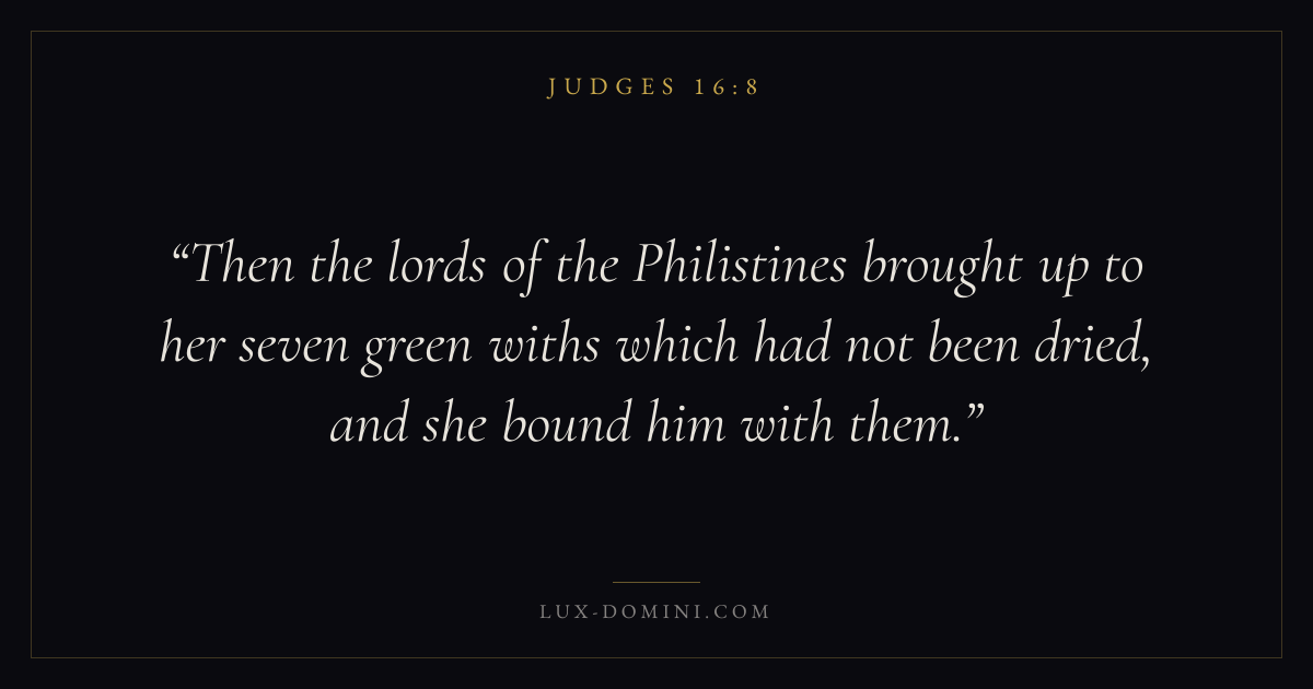 Then the lords of the Philistines brought up to her seven green withs which had not been dried, and she bound him with them.