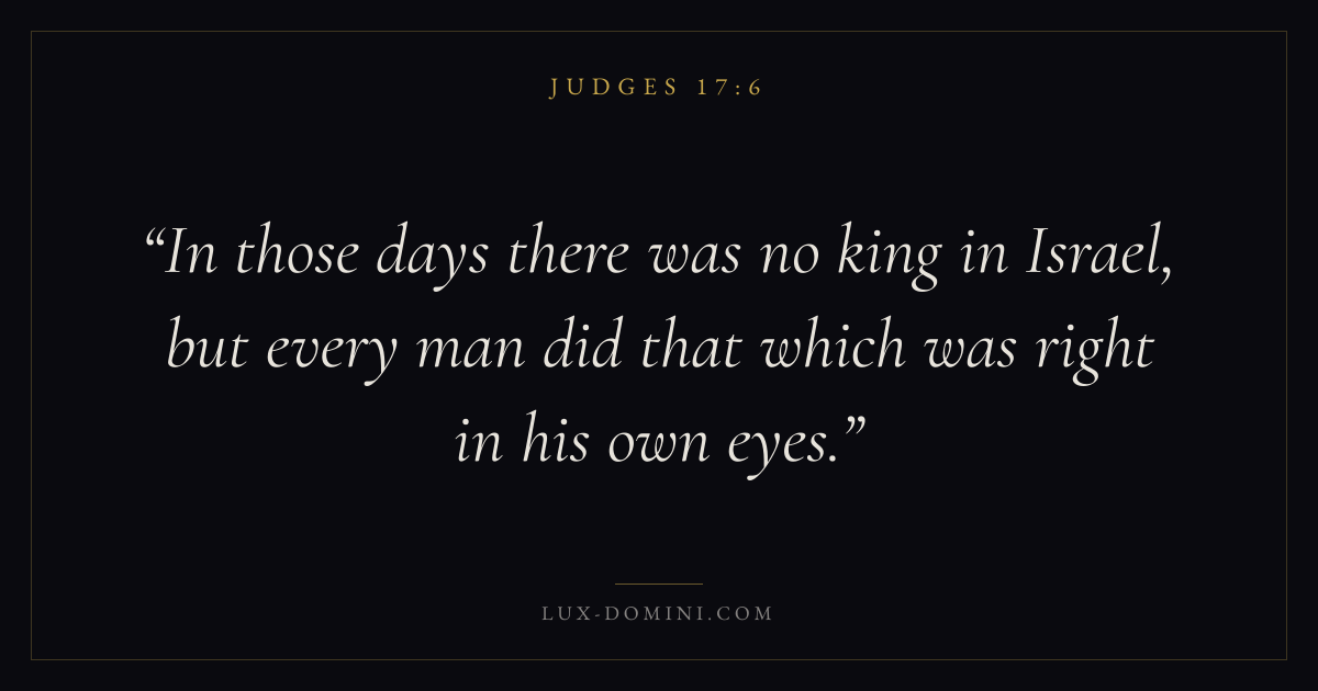 In those days there was no king in Israel, but every man did that which was right in his own eyes.