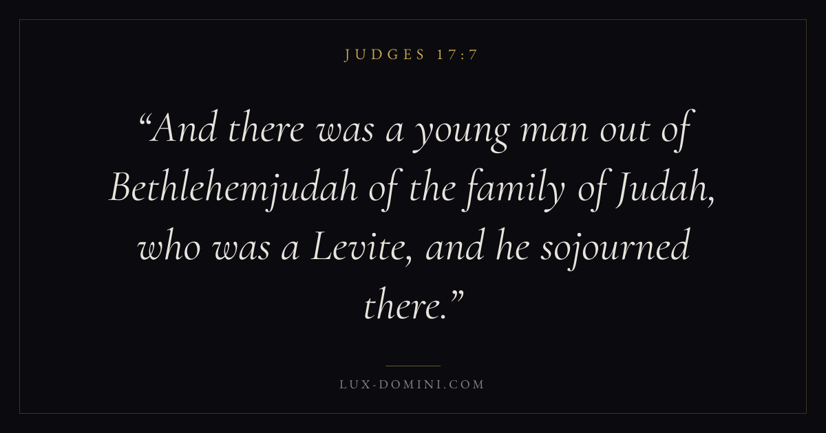 And there was a young man out of Bethlehemjudah of the family of Judah, who was a Levite, and he sojourned there.