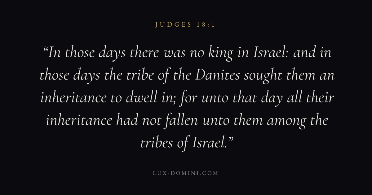 In those days there was no king in Israel: and in those days the tribe of the Danites sought them an inheritance to dwell in; for unto that day all their inheritance had not fallen unto them among the tribes of Israel.