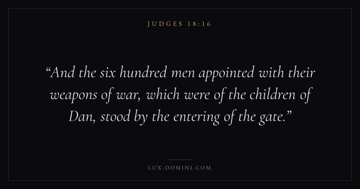 And the six hundred men appointed with their weapons of war, which were of the children of Dan, stood by the entering of the gate.