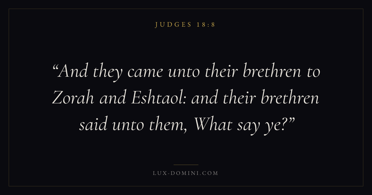 And they came unto their brethren to Zorah and Eshtaol: and their brethren said unto them, What say ye?