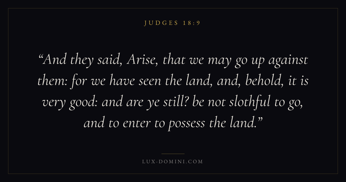 And they said, Arise, that we may go up against them: for we have seen the land, and, behold, it is very good: and are ye still? be not slothful to go, and to enter to possess the land.