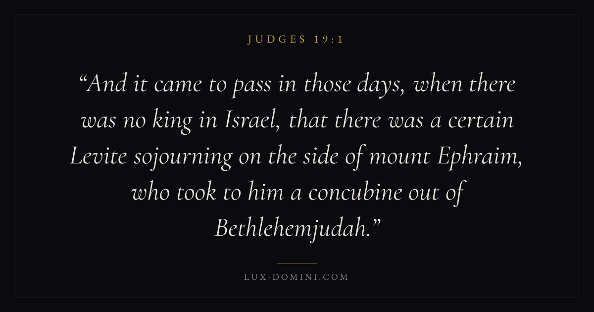 And it came to pass in those days, when there was no king in Israel, that there was a certain Levite sojourning on the side of mount Ephraim, who took to him a concubine out of Bethlehemjudah.