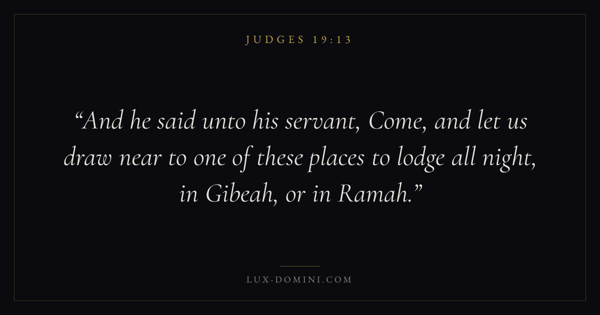 And he said unto his servant, Come, and let us draw near to one of these places to lodge all night, in Gibeah, or in Ramah.