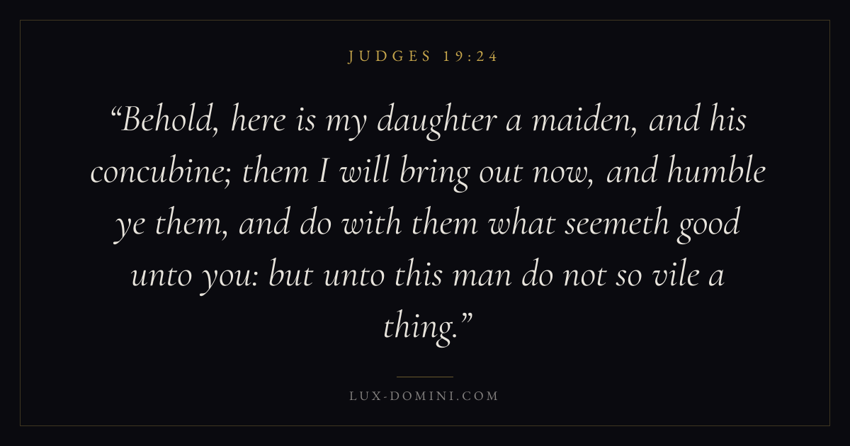 Behold, here is my daughter a maiden, and his concubine; them I will bring out now, and humble ye them, and do with them what seemeth good unto you: but unto this man do not so vile a thing.