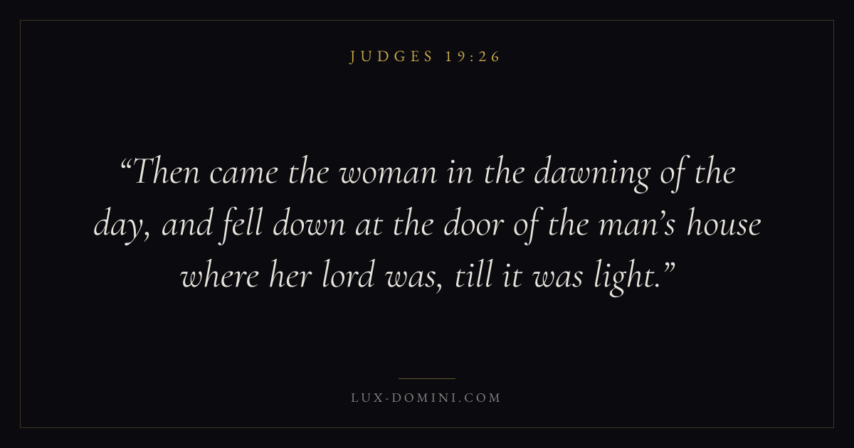 Then came the woman in the dawning of the day, and fell down at the door of the man’s house where her lord was, till it was light.