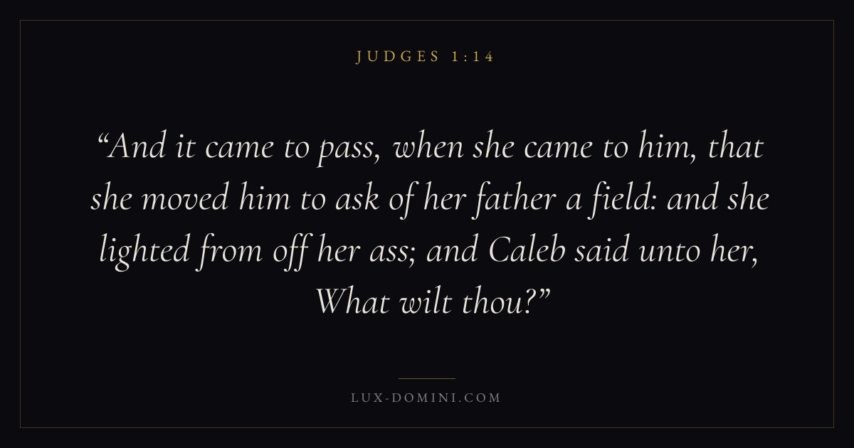 And it came to pass, when she came to him, that she moved him to ask of her father a field: and she lighted from off her ass; and Caleb said unto her, What wilt thou?