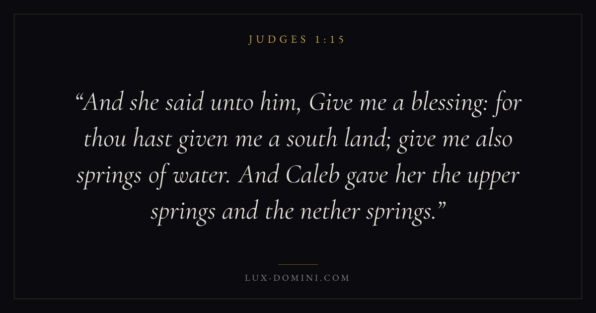 And she said unto him, Give me a blessing: for thou hast given me a south land; give me also springs of water. And Caleb gave her the upper springs and the nether springs.