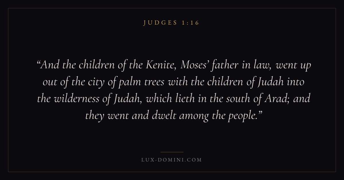 And the children of the Kenite, Moses’ father in law, went up out of the city of palm trees with the children of Judah into the wilderness of Judah, which lieth in the south of Arad; and they went and dwelt among the people.